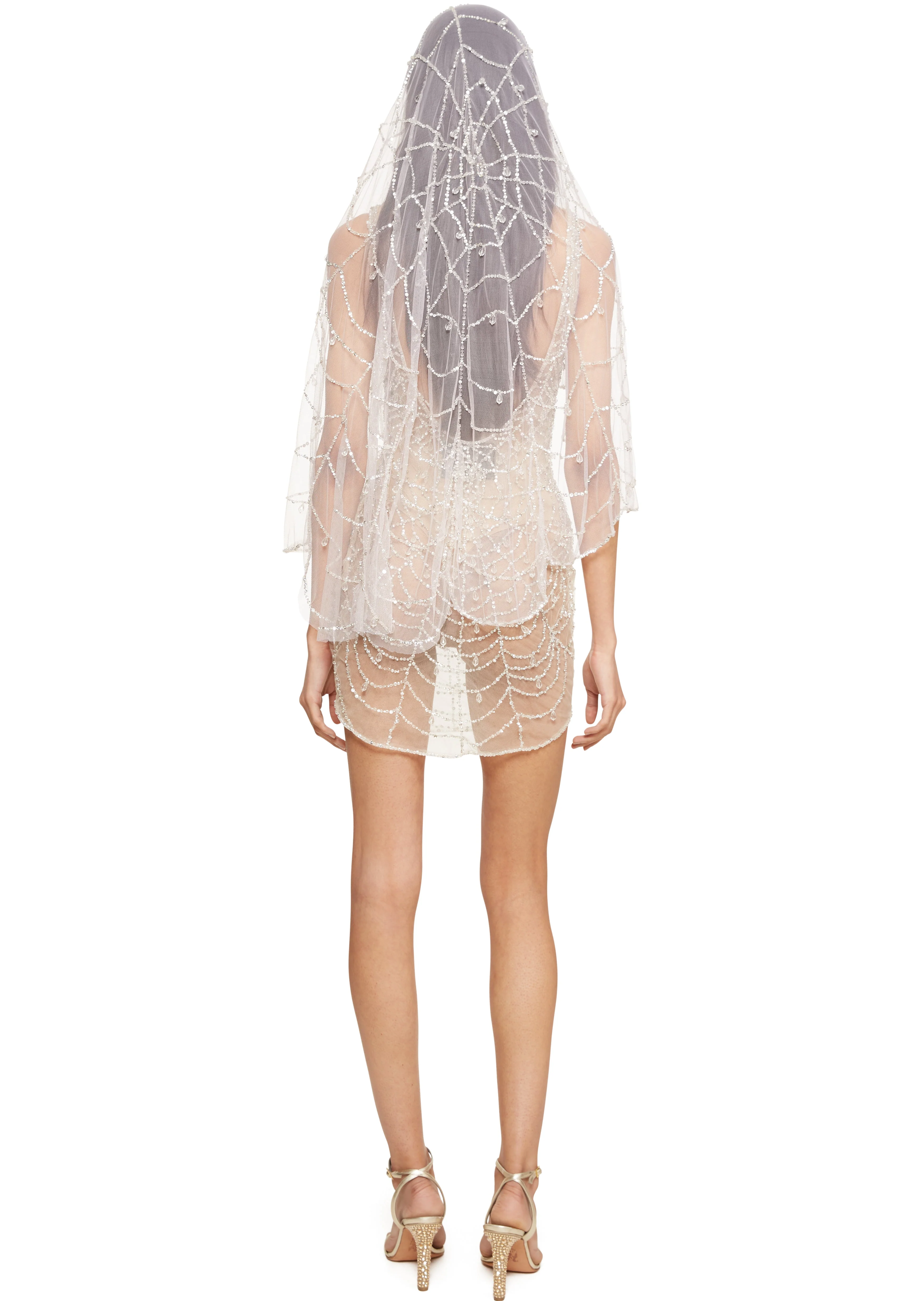 The silk mesh perfectly hugs the body to create the perfect silhouette.Ā The spider-web pattern is embellishedĀ with Ā two-cut beads.Ā
